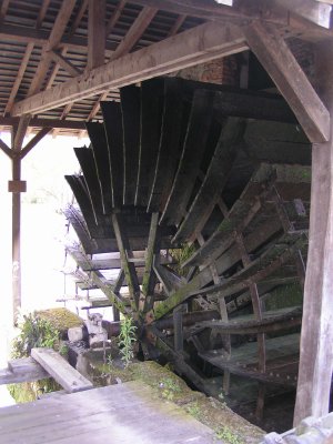 Von der Brücke nach Pont-de-Ruan bietet sich dann die 3-Mühlenszenerie, die im Roman vielleicht noch ein Stück romantischer wirkt. Rechter Hand kann man bei der 1959 stillgelegten Lambert-Mühle noch den alten Antrieb mit dem 1891 montierten Schaufelrad studieren.
