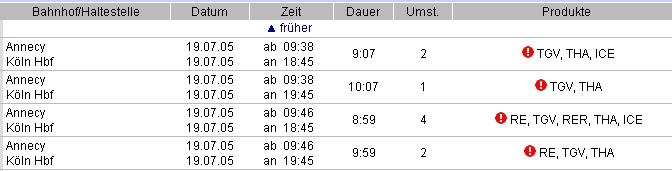 Bahnverbindungen nach Talloires